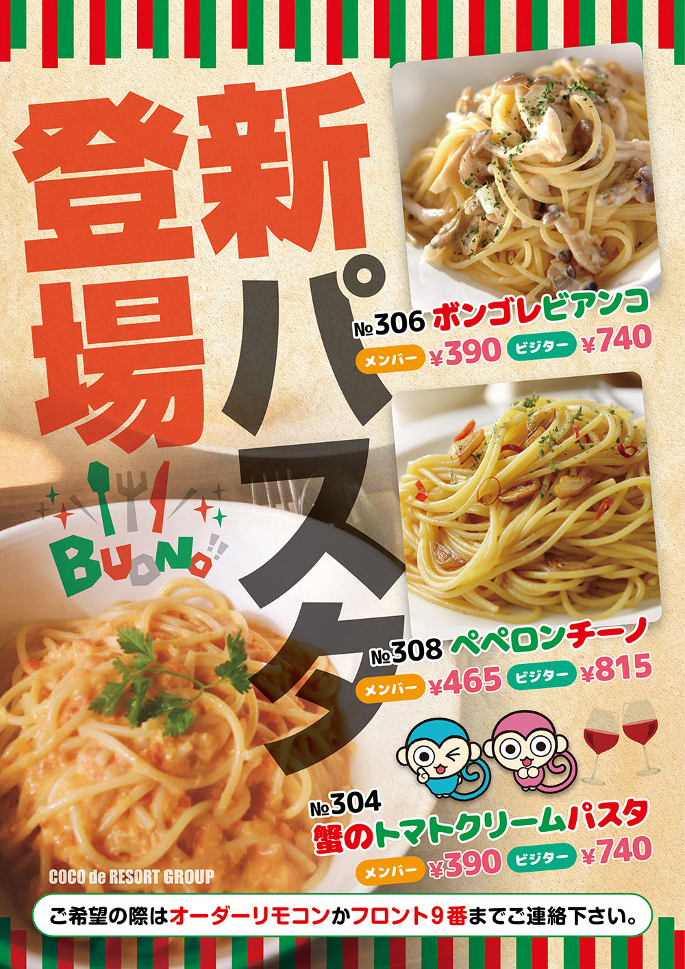 内容や商品番号は店舗によって異なる場合がございます。オーダーの際は、お部屋に設置されたカタログ・POP等でご確認の上、ご注文ください。