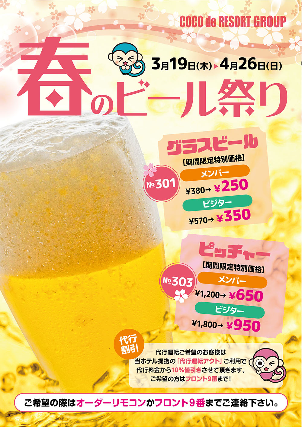 グラスビール・ピッチャー共に大変お得な価格にて